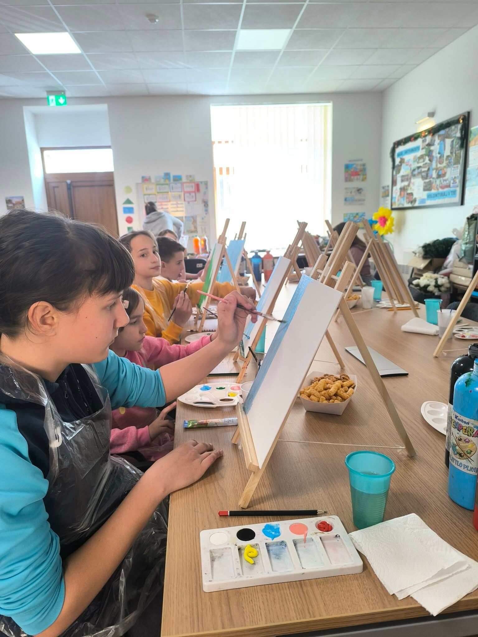 U ponedjeljak, 23. ožujka, održali smo Paint & Juice radionicu u prostoru DND-a Veliko Trojstvo. Djecu su dočekale boje, kistovi i platna, ali i slatkiši i sokići. Iako ih je čekao i postupak crtanja zeca, nismo ih u potpunosti ograničili izgledom, tako da je svako dijete moglo napraviti svoju varijantu zeke i izabrati pozadinu za svog zeca. Vrijeme nam je brzo proletjelo, a djeca su kući ponijela lijepe likovne radove koji će im krasiti domove povodom nadolazećeg Uskrsa! Nekoliko fotografija vam donosimo u nastavku, a ostatak možete vidjeti putem linka ispod fotografija: